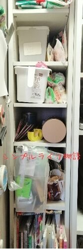 冷蔵庫と食器棚の間にできたすき間にピッタリのすき間収納棚を使っていました。キッチンの間取りには最適な収納棚だったのですが、使い方が雑なためか、すごくごちゃごちゃして、使いにくくなっております。そこで、無印良品のグッズを取り入れてみたところ…